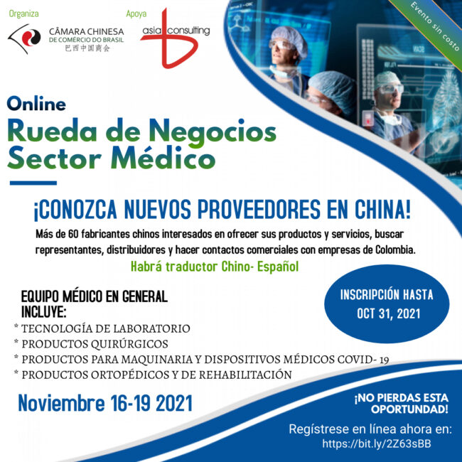 Conozca nuevos proveedores en China. Evento online y gratuito, inscripción hasta 31 de Octubre 2021. Link para registro: https://bit.ly/2Z63sBB