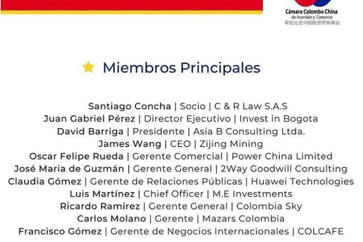 Nuestro CEO, David Barriga es nuevamente elegido como Miembro principal de la Junta Directiva de la Cámara Colombo China para el período 2020 – 2021.